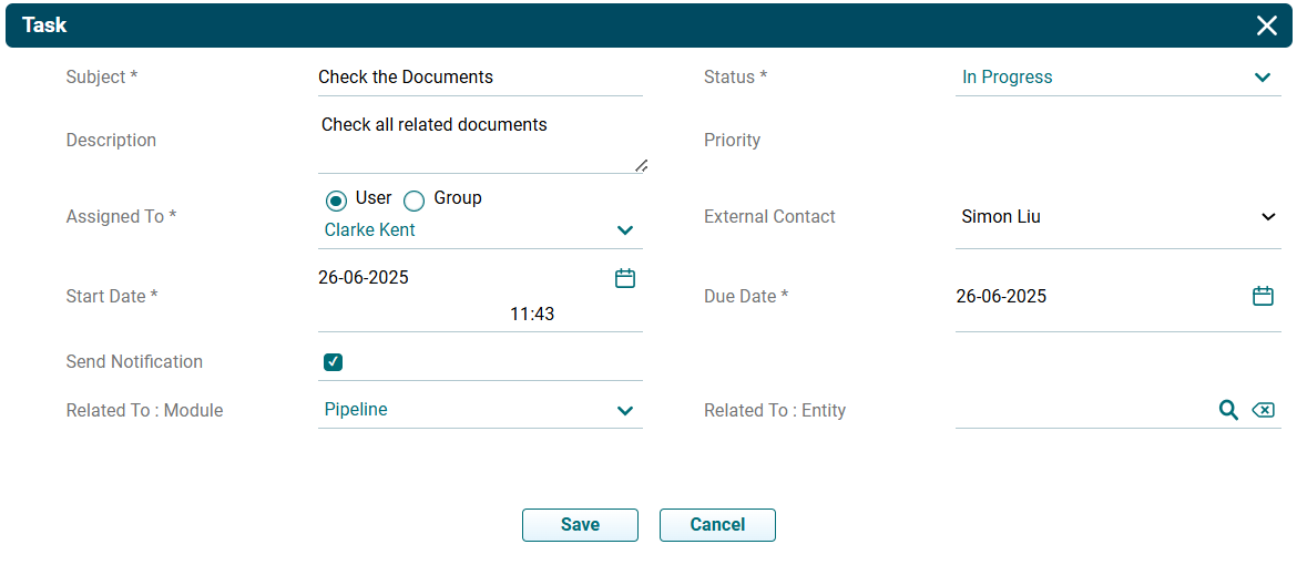- Priority: Select the priority of the task if it is a high-priority, low-priority or medium-priority task.