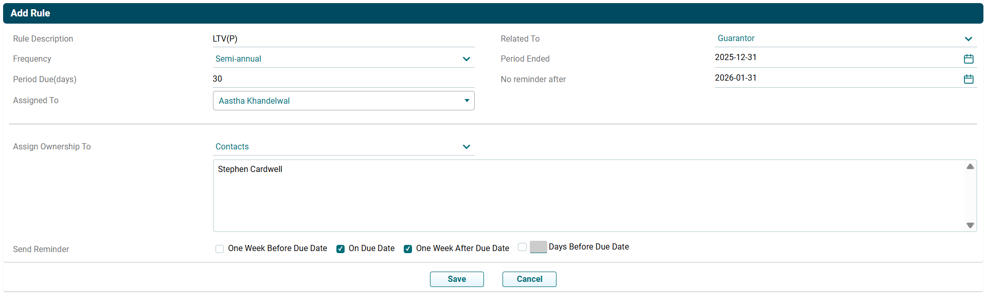 - No Reminder Date: Displays the date after which no reminder is to be sent for that rule.
