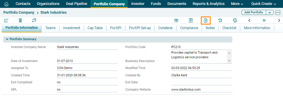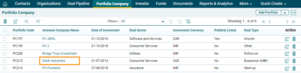 1. Click on Investee