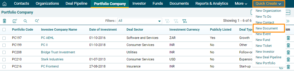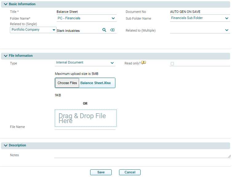 2. The Create Document window is displayed. Enter the basic details and click Save.