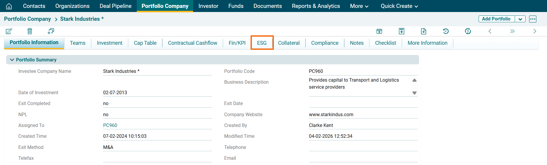 1. Click on the ESG Tab.