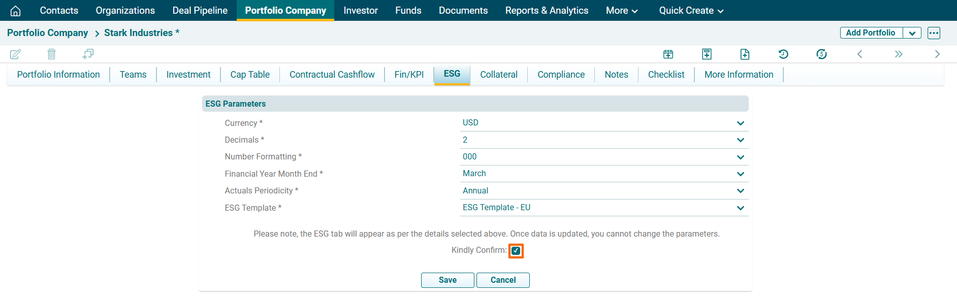 3. Click the Kindly Confirm checkbox to confirm the changes. Click on Save after entering details