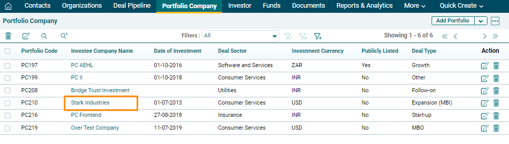 1. Click on Portfolio Company in the main menu.