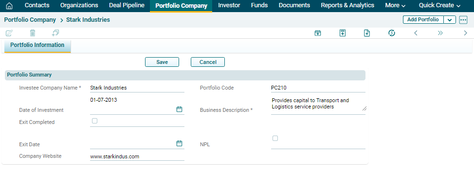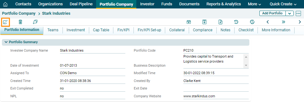 To edit a Portfolio Company in Record View,