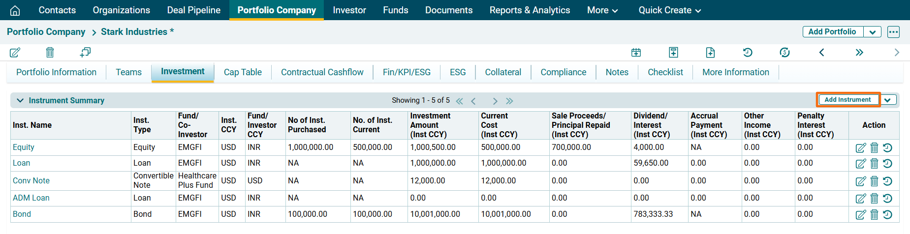 1. Click on Add Instrument button in the top right corner of the Instrument Summary panel.