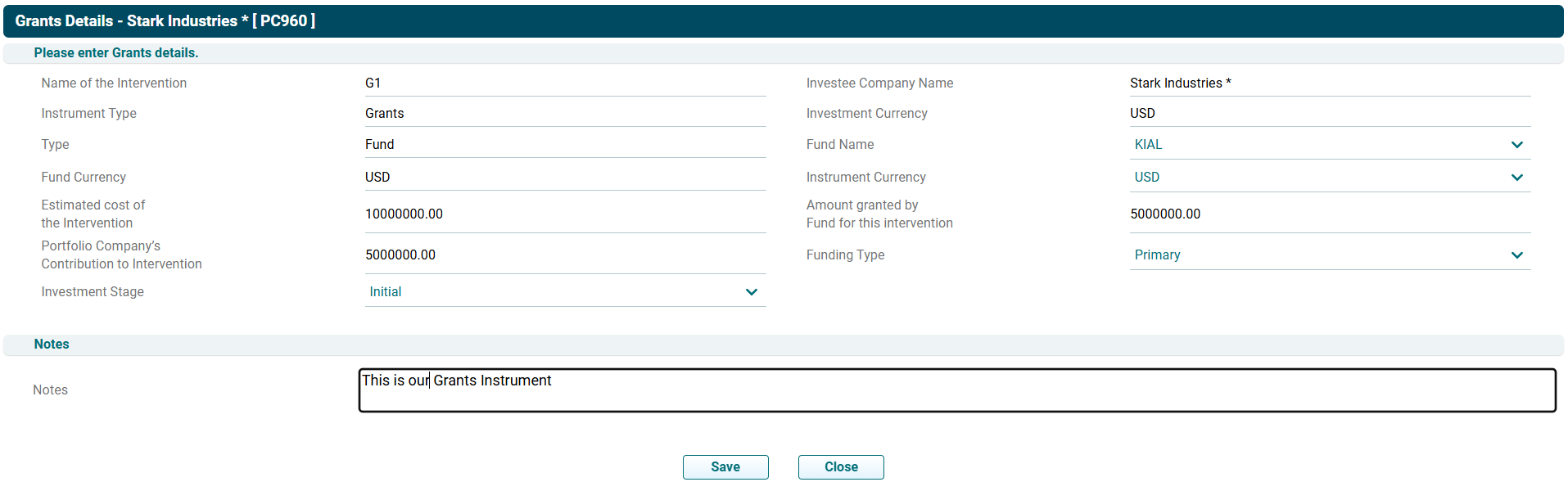 2. The Instrument Type window is displayed. Select Grants from the Instrument Type dropdown list. Click Proceed.
