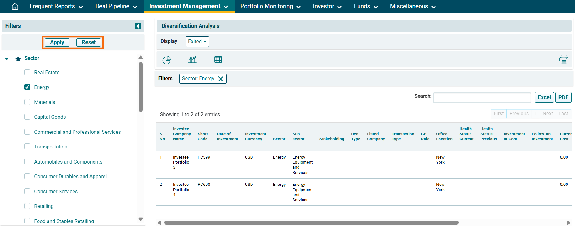 - Display: To view all the portfolio companies including Exited, Non-Exited, or Both Exited and Non-Exited.