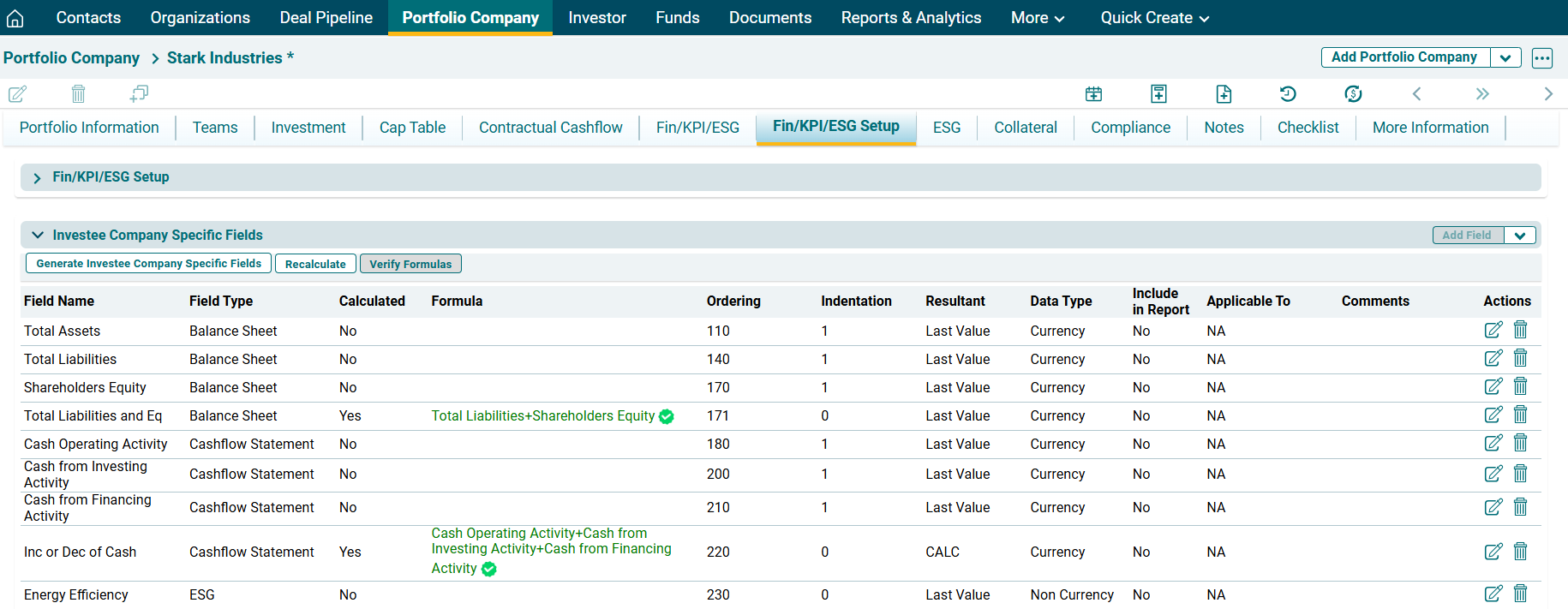 Investee Company Specific Fields