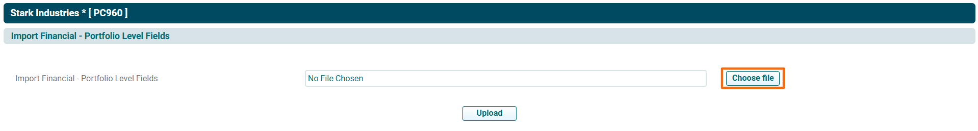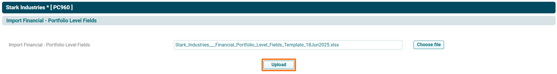 6. Choose the Portfolio Level Field Template. Click Upload.