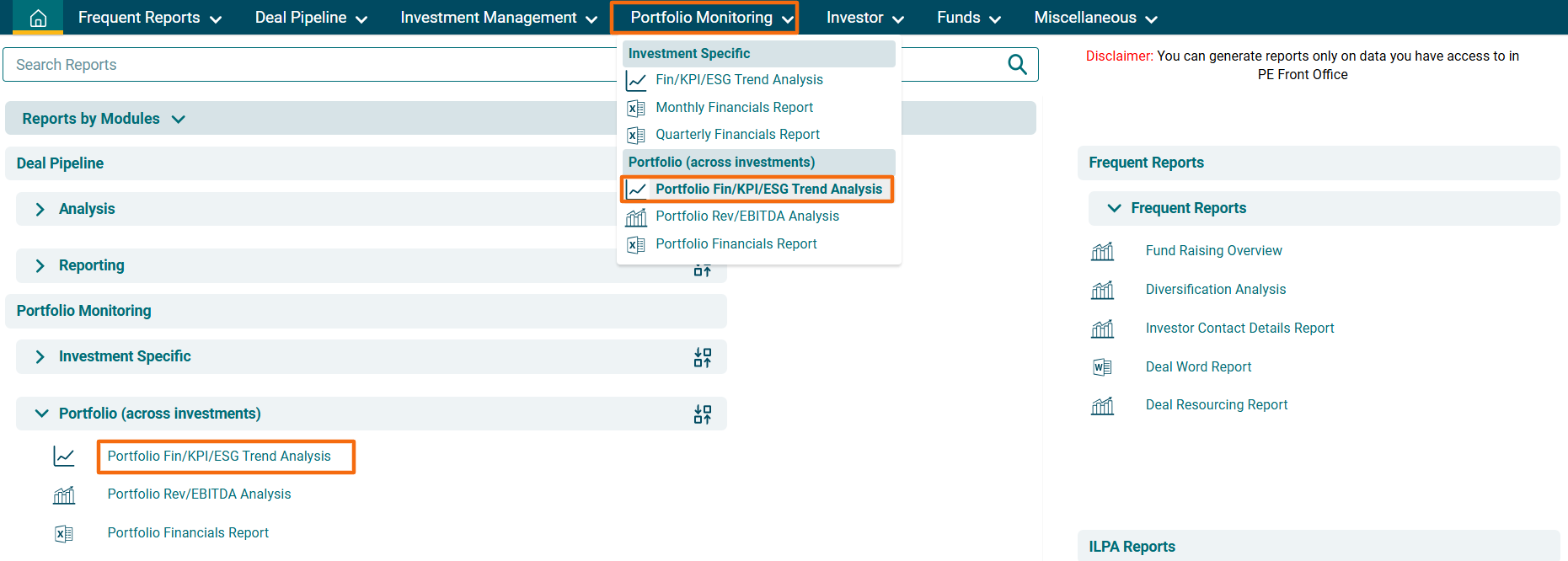 To view and download Portfolio Fin/KPI/ESG Trend Analysis reports, follow the below steps: