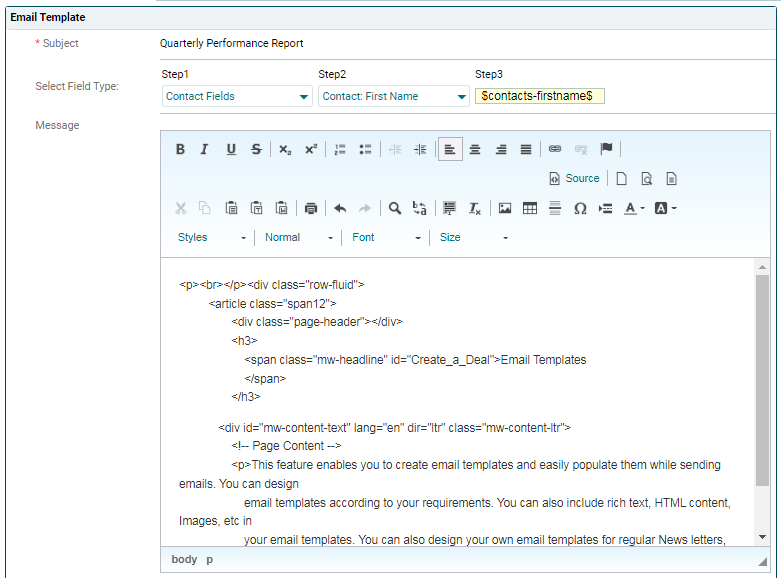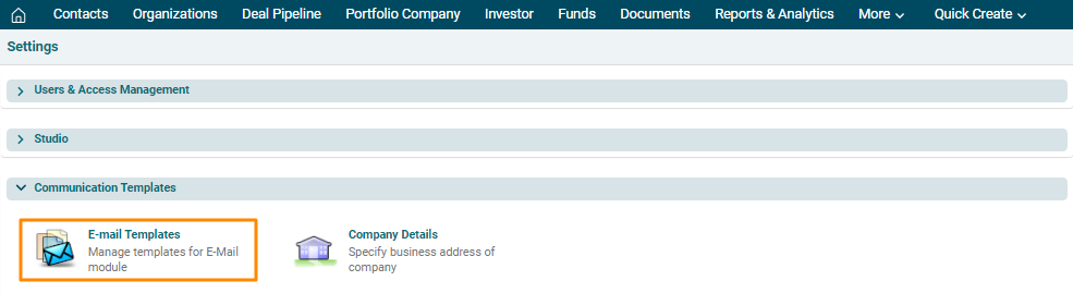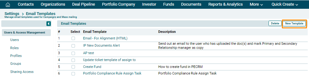 be displayed. Click on New Email Template button in the top right corner of the panel.