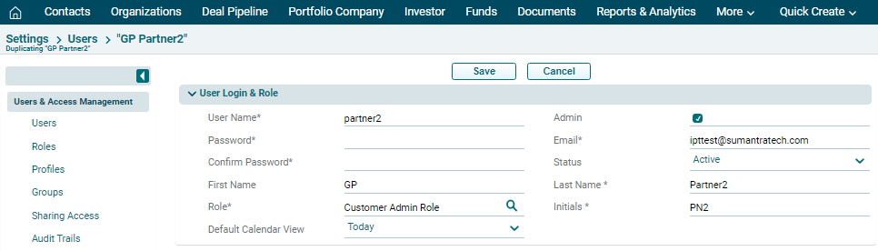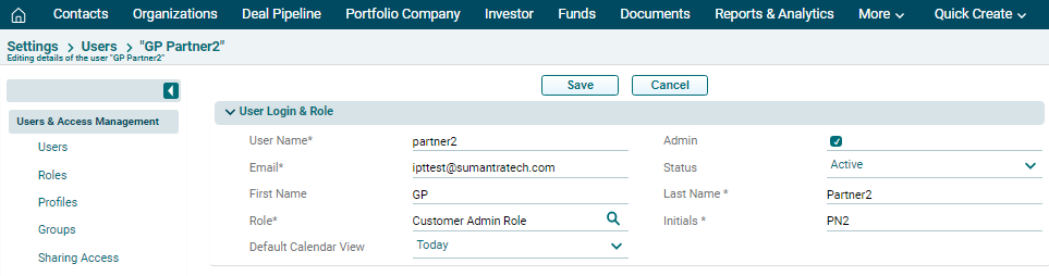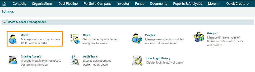 You can edit user accounts to change their roles and access to PE Front Office. After getting edited, users will be able to access the new features or will be restricted from using the features that were accessible.